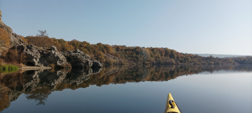 След като пристигнем на язовира, ще се екипираме, ще направим инструктажа за плаването с каяк, ще си вземем провизиите и се потапяме с лодките във водата. Ще направим една разходка до устието на р. Струма където въпреки есента има доста видове птици, ще минем под скалите, на които е кацнал параклиса Св. Йоан Летни и ще направим почивка за обяд на някоя полянка под параклиса. Ще се качим и на високите скали да се полюбуваме на невероятната гледка от към Св.Йоан Летни, която направи това място толкова известно, а след това ще плаваме още около час с каяците край бреговете на язовир за да натрупаме още малко опит и красиви гледки. През есента язовир Пчелина е особенно пищен и щедър от към пейзажи. Гората около него е предимно широколистна и по това време на годината вече е почнала да изпъзтря свойте корони, а времето все още е меко и приятно за разходки!